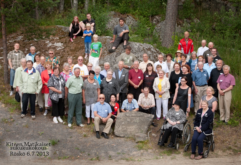 Vuoden 2013 Sukuseura Kiteen Matikaiset r.y:n vuosikokoukseen osallistui runsaat 50 suvun jäsentä. Kokous pidettiin luonnonkauniissa Röskön leirikeskuksessa, osoitteessa Rösköntie 9, 82580 Juurikka.