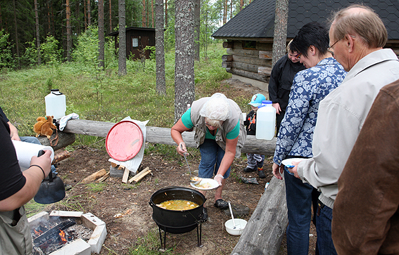 Ruokailu kodalla, lohisoppaa